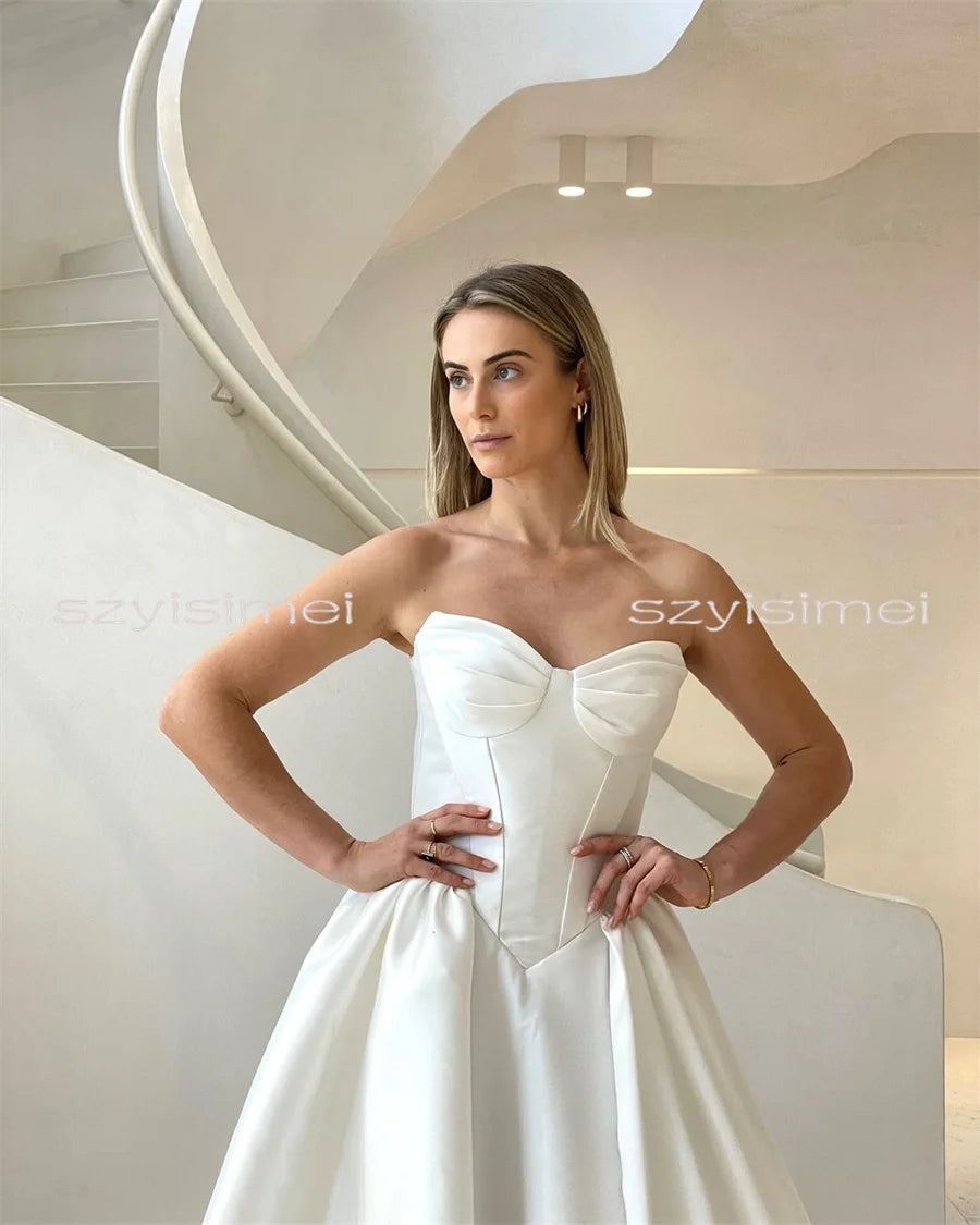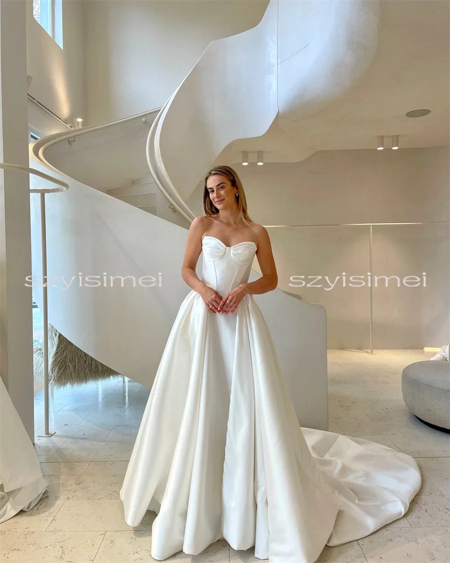 Sweetheart Satin Wedding Gown A-Line Long Train Bridal Dresses Customized Backless Zipper Evening Dress vestidos de novia