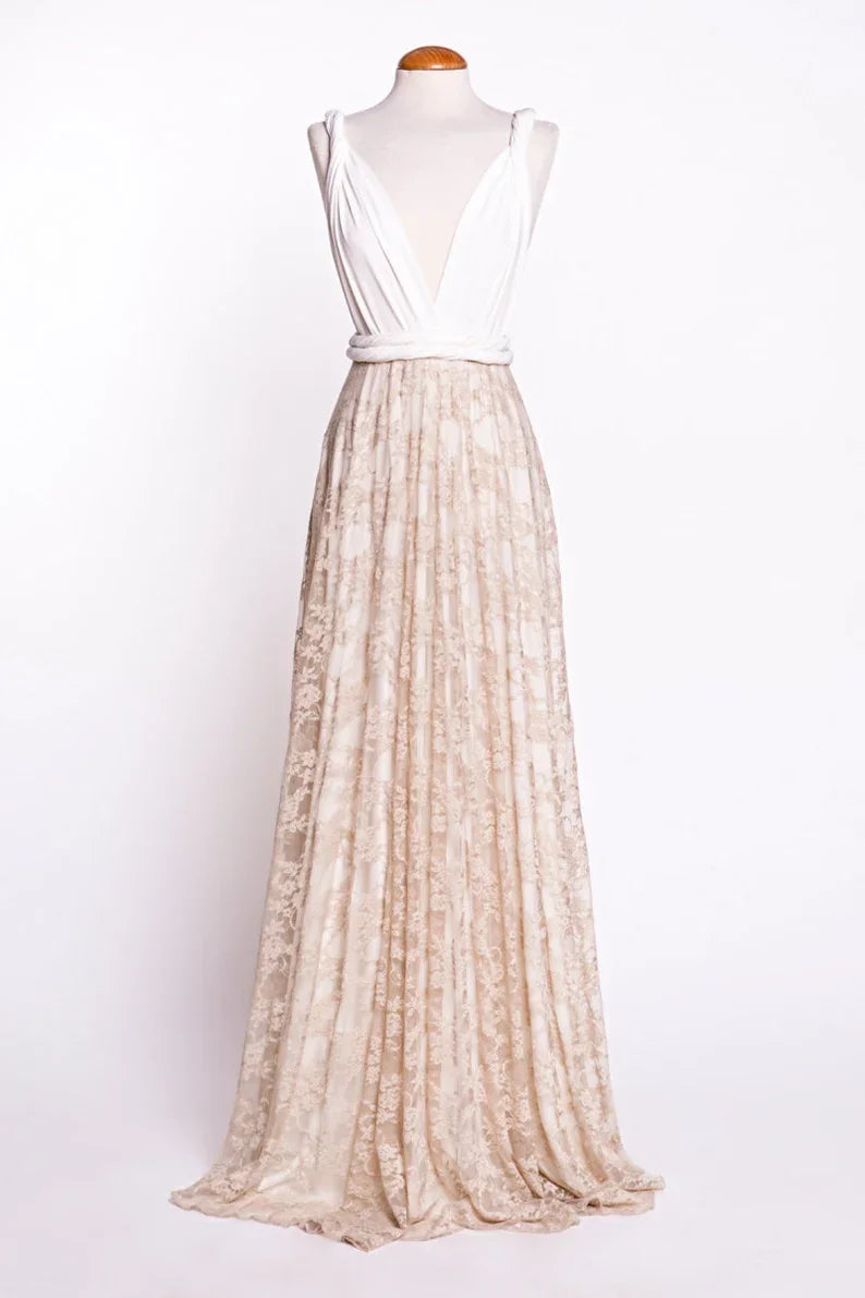 Wedding Dress Boho Wedding Dress Golden Lace Bridal Gown Open Back Maxi Lace Gown Boho Bridal Gown Gold Lace Wedding Dress